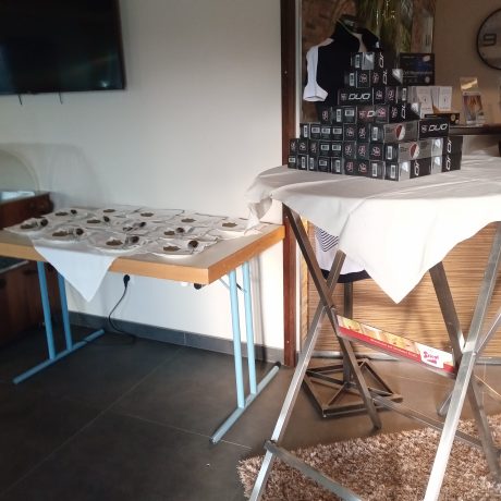 - Check-in (Ausgabe Scorekarten, Startgeschenke, Getränke, Müsliriegel, Obst)