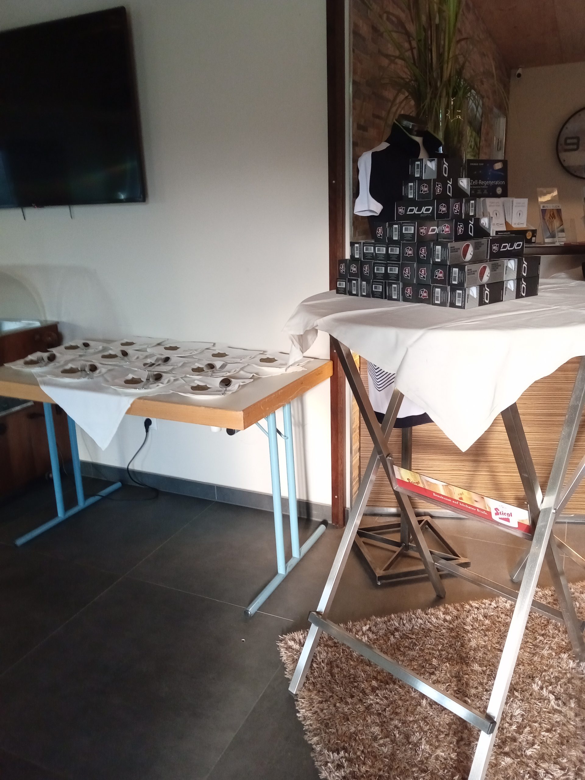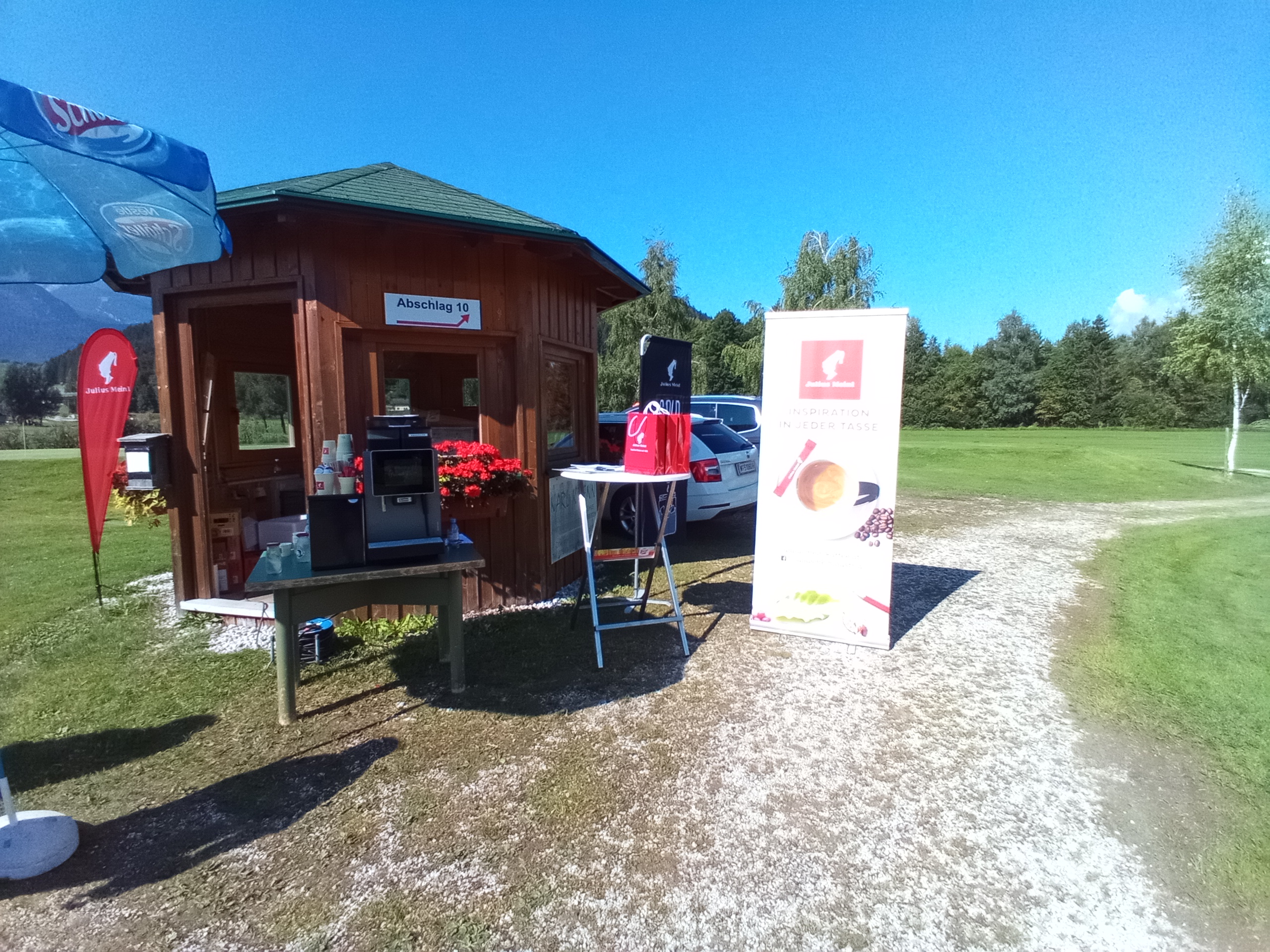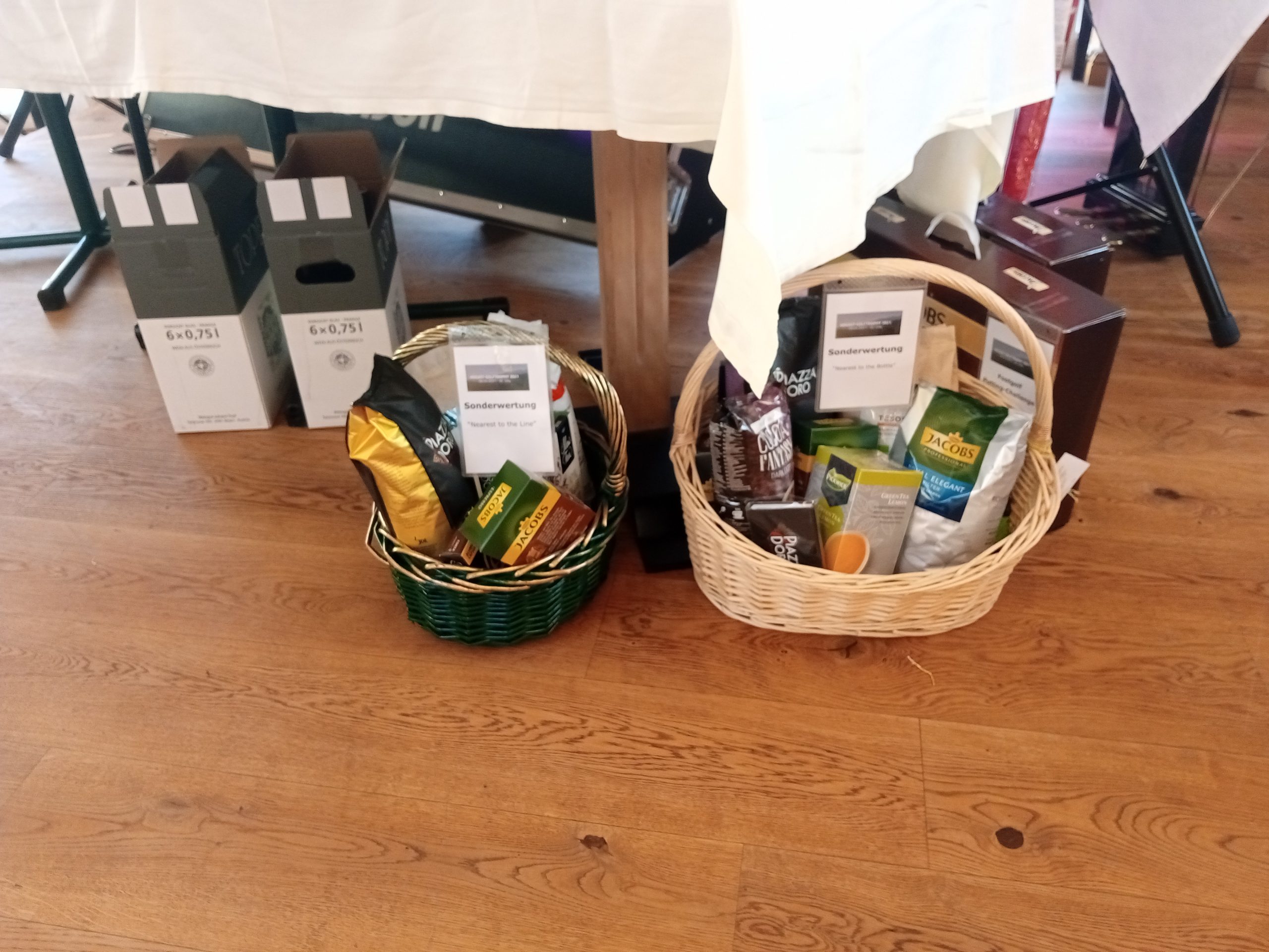 - Check-in (Ausgabe Scorekarten, Startgeschenke, Getränke, Müsliriegel, Obst)