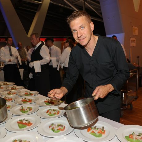 Andreas Senn ist einer der agilsten Gastronomen in Österreich. In seinem „Senn.Restaurant“ vereint er kulinarische und architektonische Innovationen – die Küche steht mitten im Gästebereich. Außerdem leitet er seit rund einem Jahr die berühmte Steinterrasse in der Salzburger Altstadt. Der 41-Jährige trägt 2 Michelin-Sterne und 4 Gault-Millau-Hauben, er ist für seine kreativen und leichten Speisen bekannt. Leicht und bekömmlich ist auch die musikalische Begleitung während der Speisenfolge, für die das „Jazzophoniker“-Quartett sorgt.